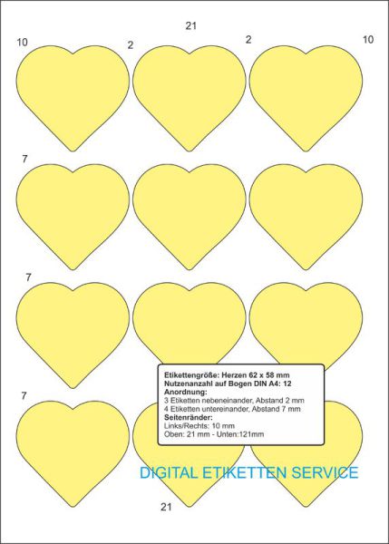 A4 Etikettenbogen Herz 62 x 58 mm, Blanko