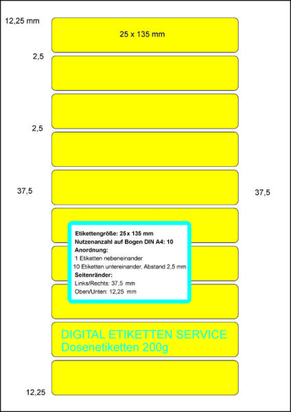 A4 Dosenetiketten 25 x 135 mm 200g-Größe 100 Blatt