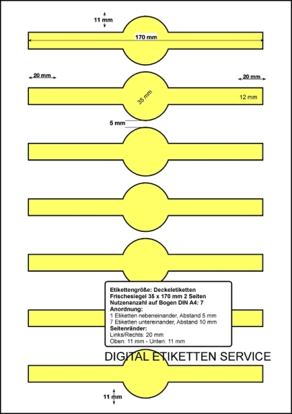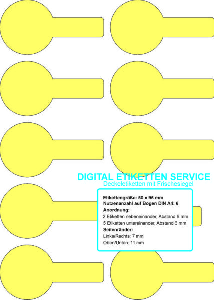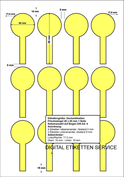 Frischesiegel Deckeletiketten 40 x 85 mm / 1 seitliches Siegel